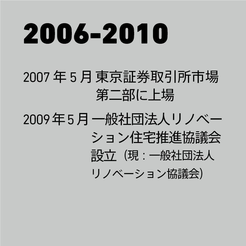 また、市場環境の改善や業界への働きかけを率先して行い マーケットの拡大に向けて、中古住宅市場の整備・構築に尽力してきました。