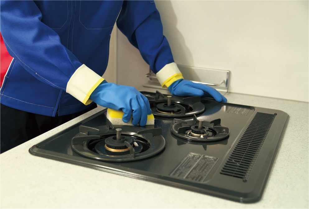 ガスコンロの頑固なコゲつきやシンクの水アカも丁寧に洗浄!