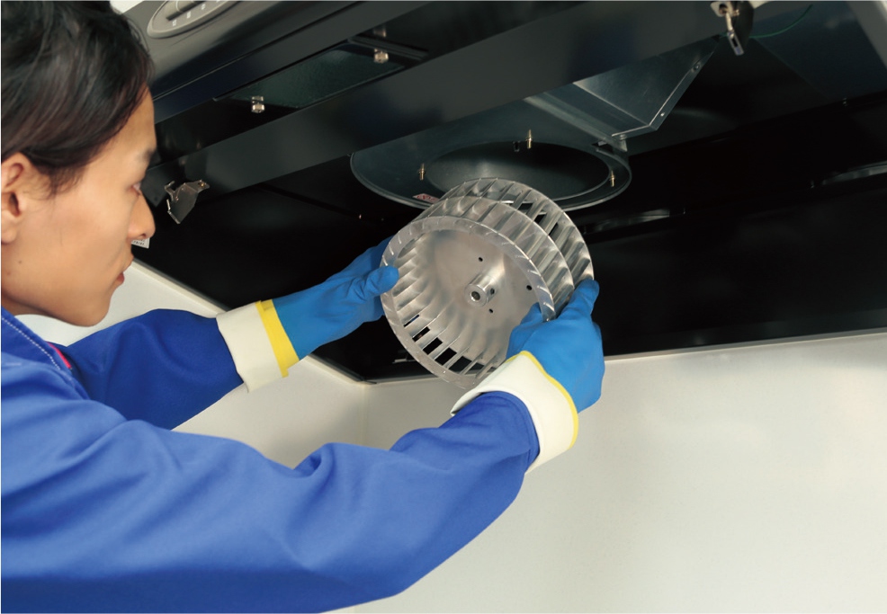 手ごわい油汚れも分解洗浄でピカピカに換気効率も格段にアップ!